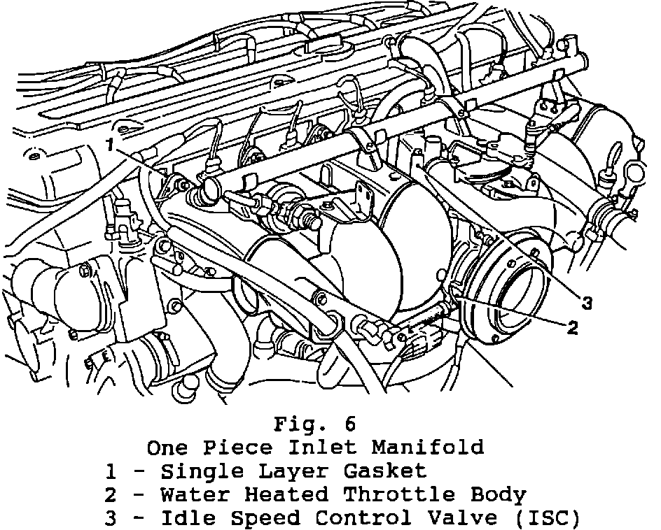 The inlet manifold is now a one piece casting, eliminating the 6 U-bend air pipes, to minimize the possibility of potential air leak paths and have more consistent flow characteristics. The inlet manifold to head face gasket is thinner to avoid separation and creep of the gasket (Fig. 6).