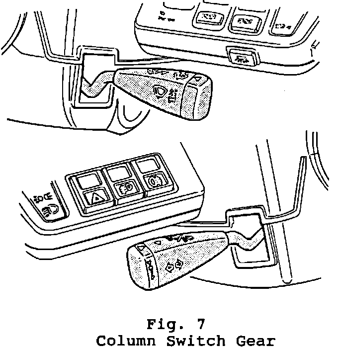 The column switch gear has improved stalk design (Fig. 7) and smoother action detents to improve the feel of operation. The stalks are also raised 0.6 in. (15 mm.) to improve access.