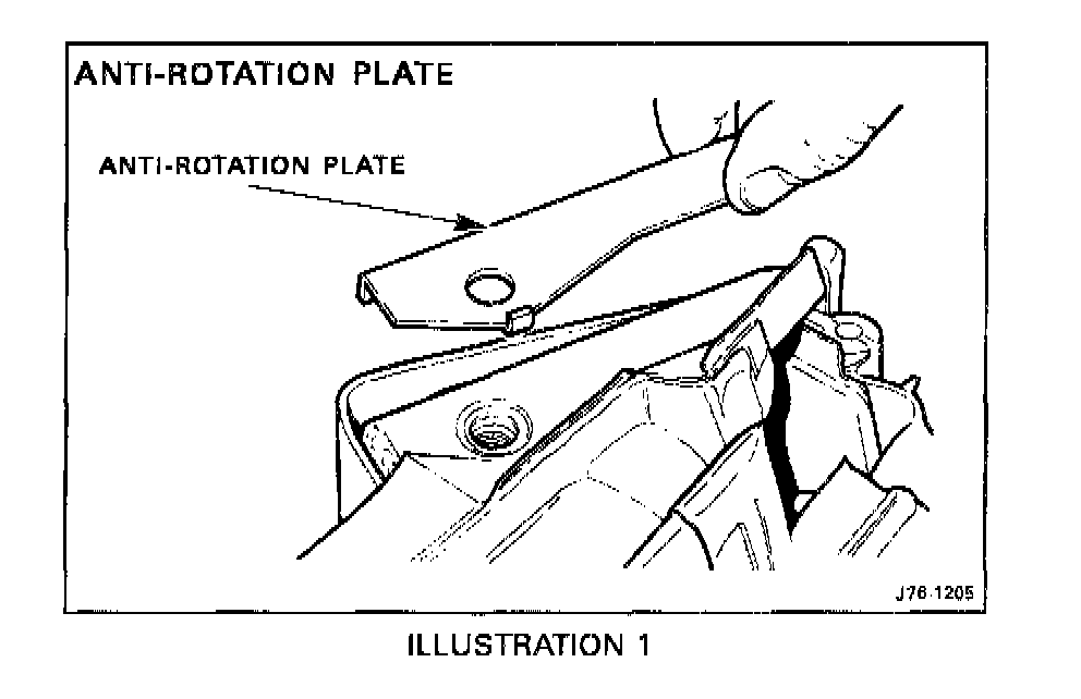 11. Remove and discard the anti-rotation plate from the top of the B post (Illustration 1).