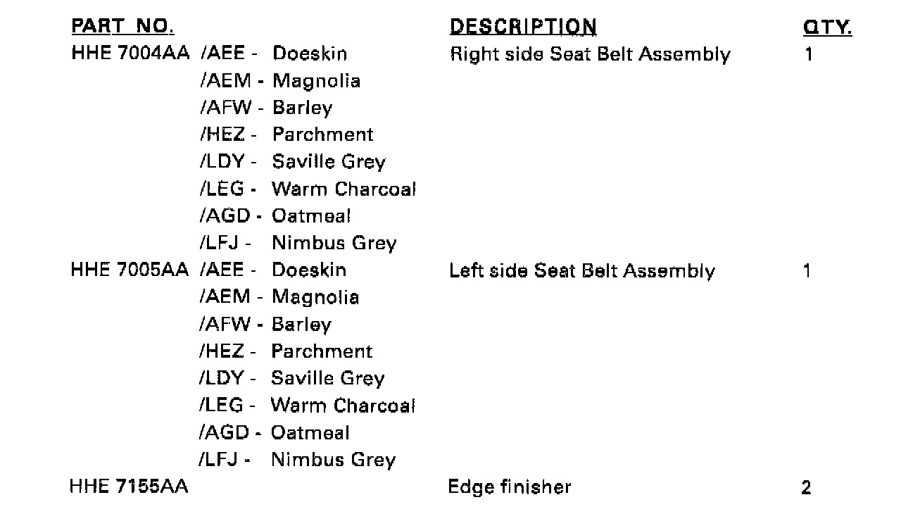 New front seat belt assemblies have been introduced in production on XJS 2+2 convertibles as of VIN 198712. These assemblies address customer complaints that the original seat belts were too short and/or became twisted.