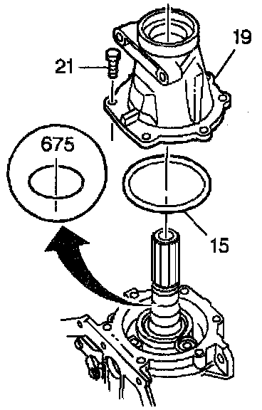 3. Install the case extension seal (15) onto the case extension (19).