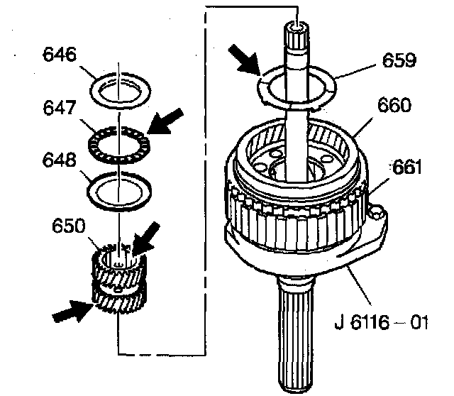 12. Remove the front internal reaction carrier washer (659) from the carrier.