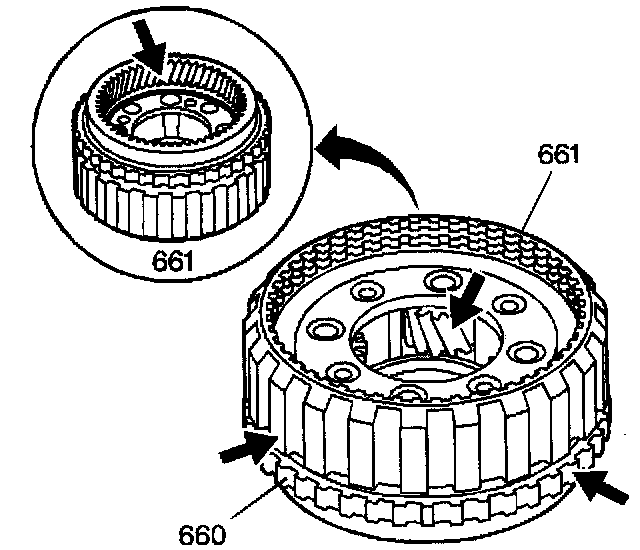5. Remove the reaction drum and carrier assembly (51) from the output carrier assembly (661).