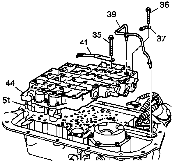 1. Remove the transmission fluid pressure manual valve position switch bolts (76) and the Transmission Fluid Pressure (TFP) valve position switch (40).
