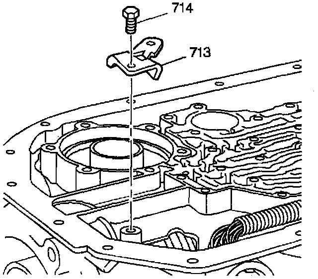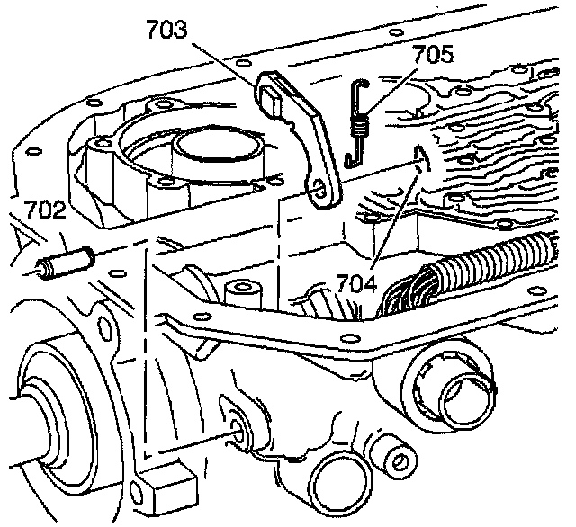 1. Install the park pawl shaft (702) and the park pawl (703).