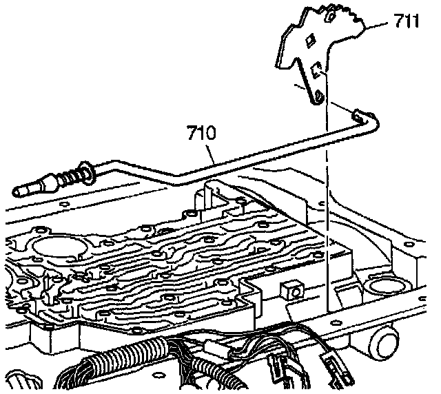 6. Assemble the detent lever (711) to the park pawl actuator assembly (710).