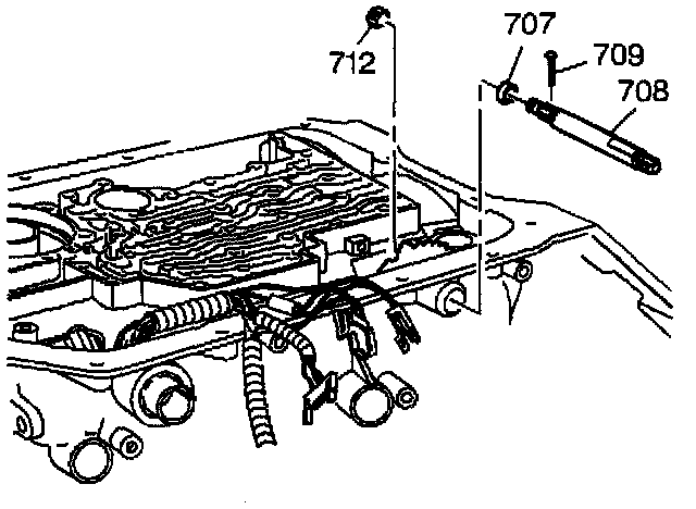 12. Install the manual shaft retaining pin (709) onto the manual shaft (708).