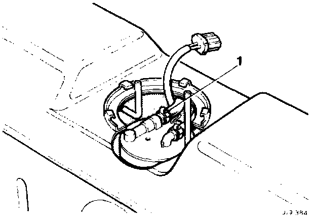 - Slacken the return hose to the internal stub pipe securing clip (1), displace clip and remove the hose.