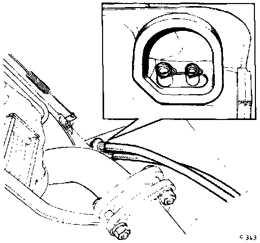 - Disconnect hose from tank, remove and discard hose and O-ring seal.