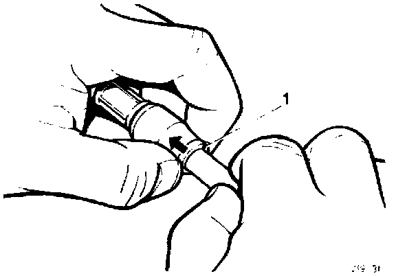 - Disconnect the quick release connector by pushing the locking ring towards the connector (1) and withdraw the fuel hose from the main return line.