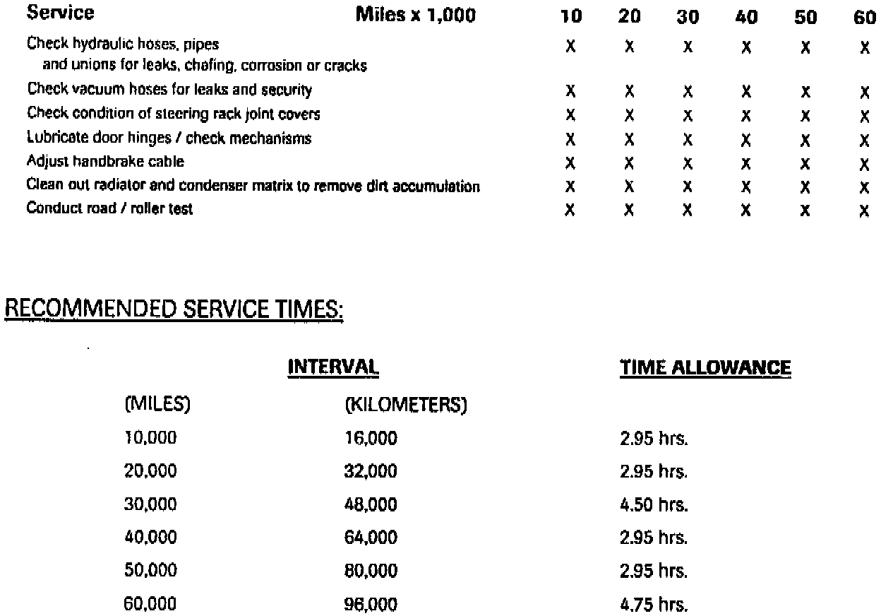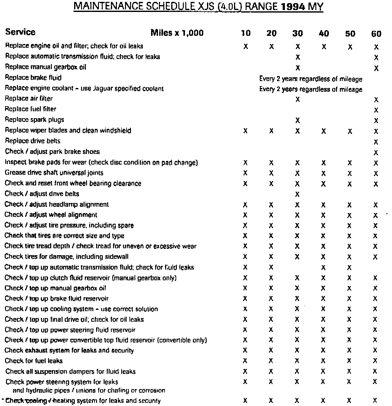 1994 MY XJS 4.0L Maintenance Schedules and Service Times