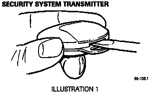 To prevent damage when removing the battery access cover of 1995 MY Sedan Range security system transmitters, use the following procedure.