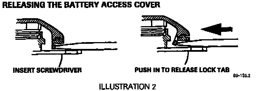 1. Insert a small (1/16" thick) screwdriver between the access cover and body (Illustration 1).