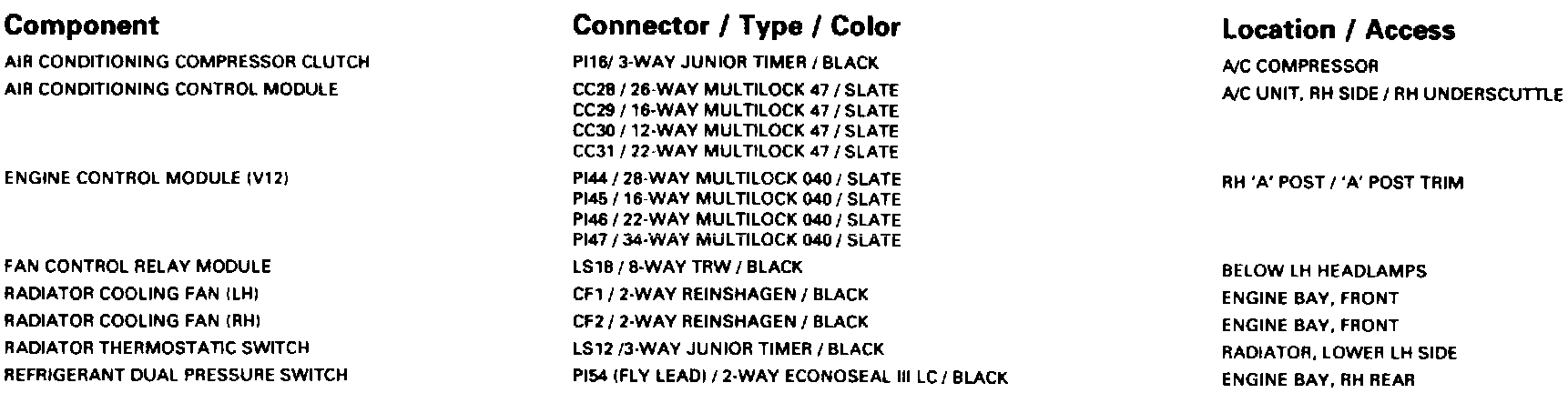 Radiator Cooling; Air Conditioning Compressor: Harness-To-Harness Connectors:
