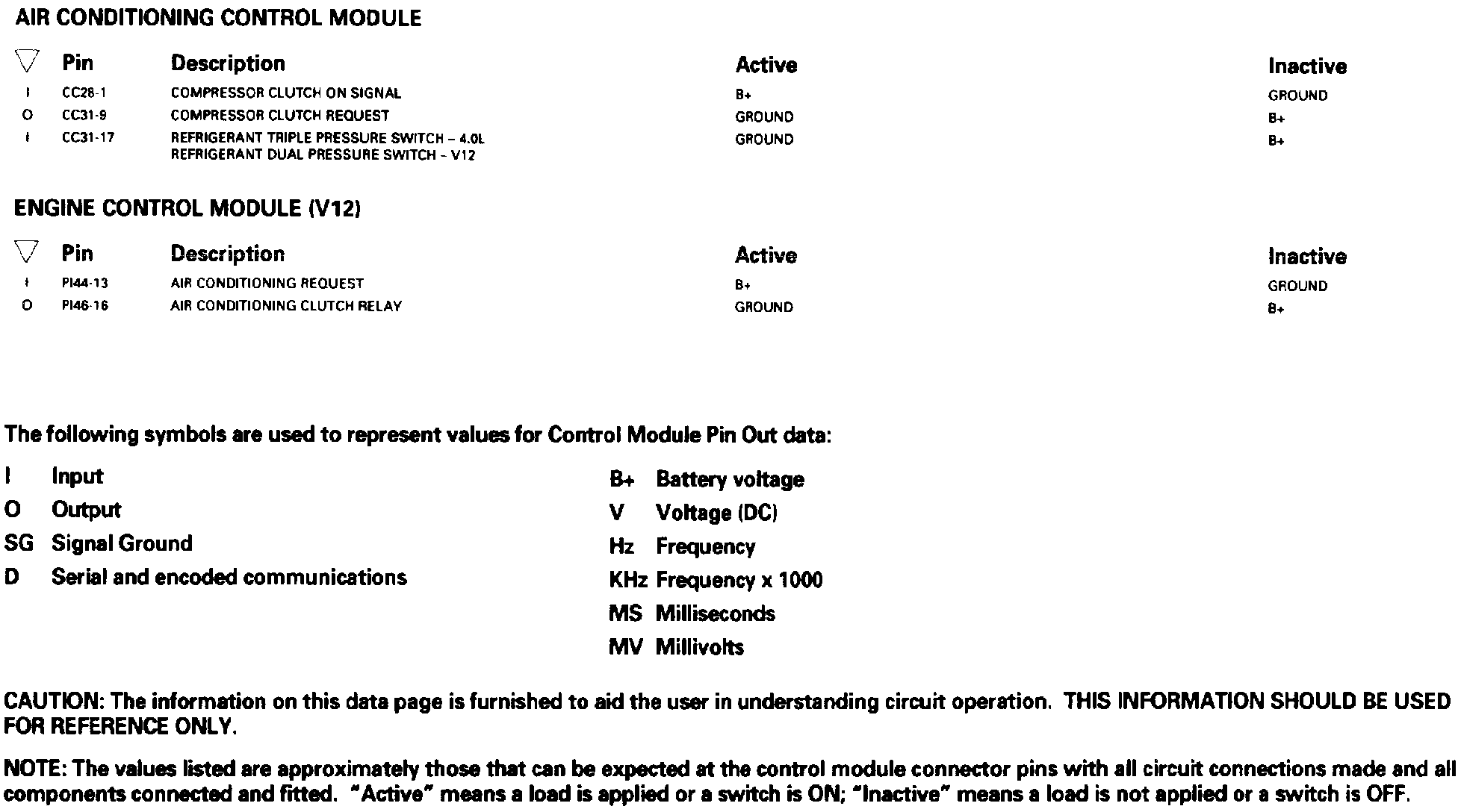 Radiator Cooling; Air Conditioning Compressor: Control Module Pin Out Information: