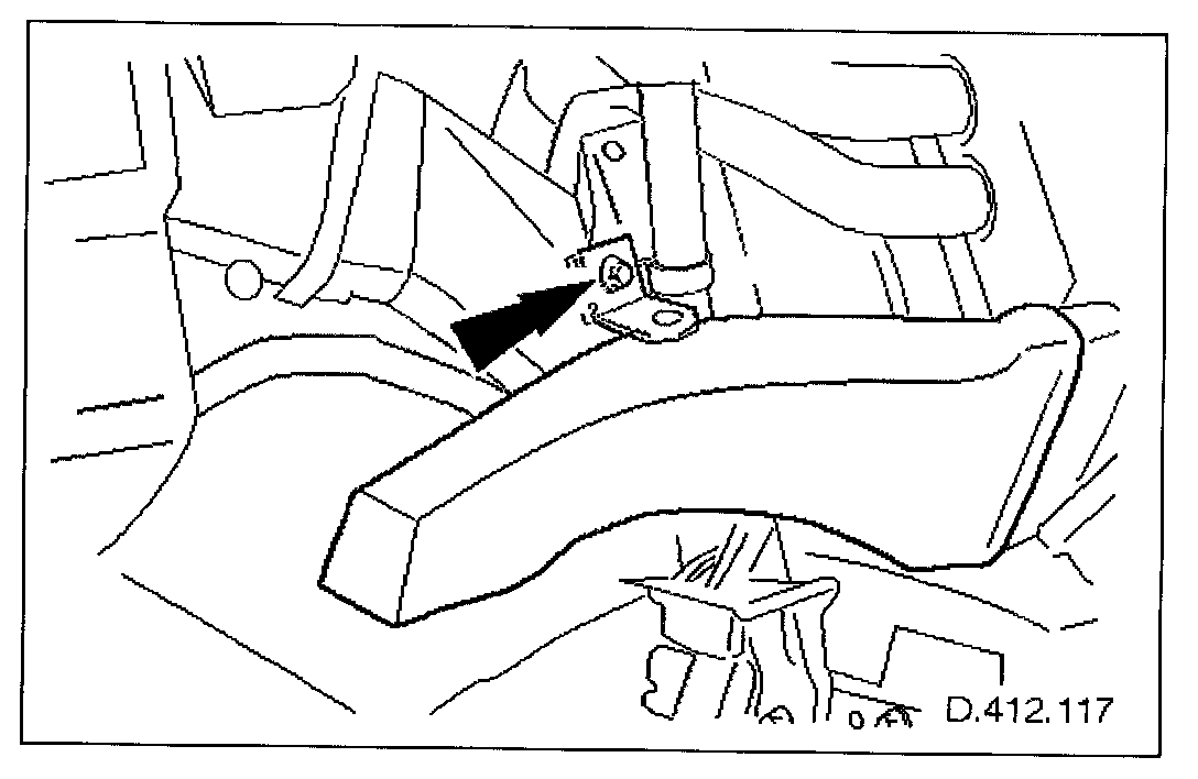 2. Slacken bolt ('A' post side), remove remaining bolt.