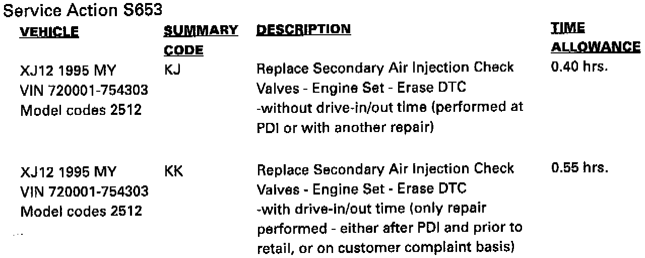 A revised check valve for the Secondary Air Injection System is available for XJ12 vehicles within the above VIN range to eliminate unnecessary illumination of the MIL.