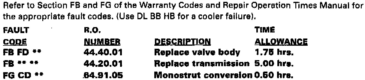 Transmissions returned under warranty must be accompanied by a completed W-28 form and must have the torque converter retaining bracket installed.
