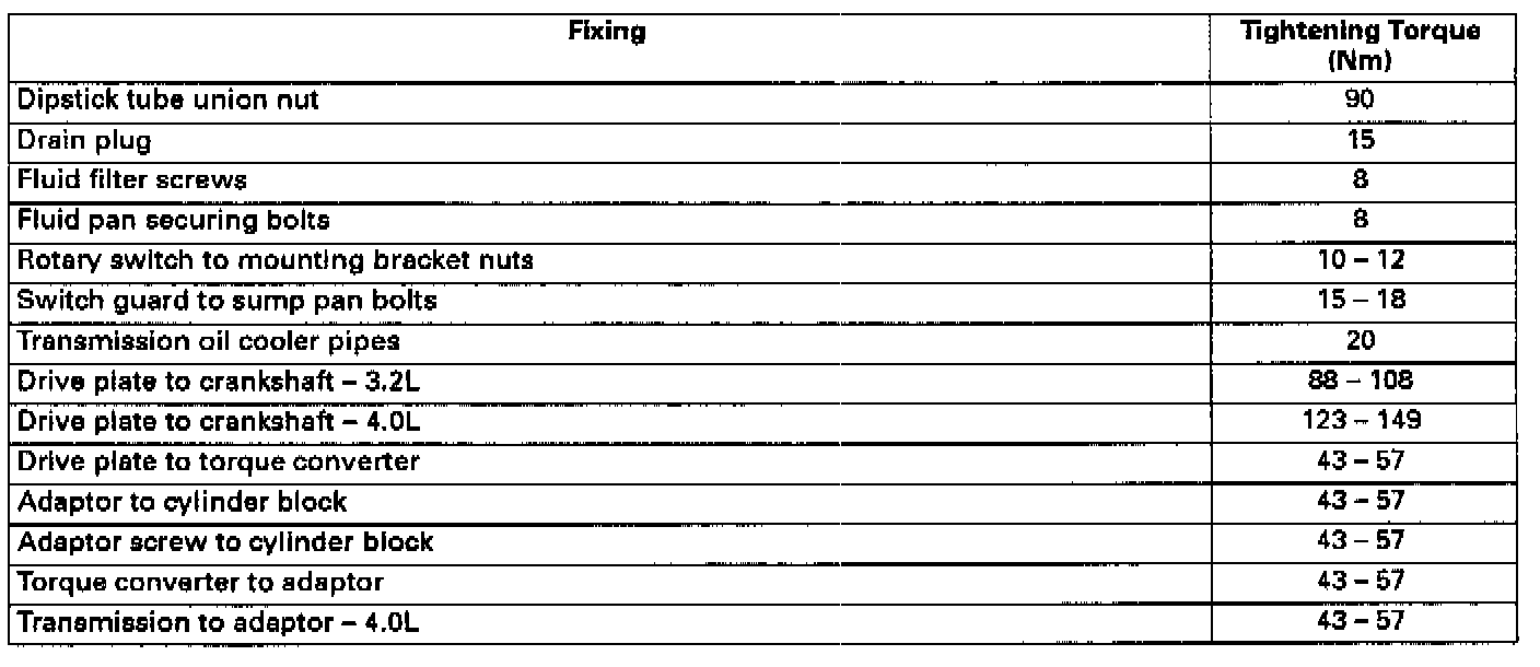 Automatic Transmission Specs For Vehicles With AJ16 Engine: