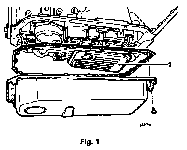 - Displace and remove the filter (1 Fig. 1) from the trans- mission unit and place aside.