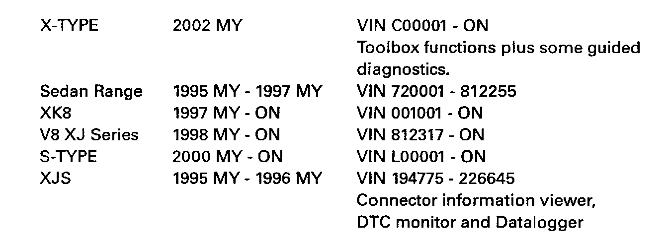 JTP 759/13 software covers the following NAS vehicle ranges shown.