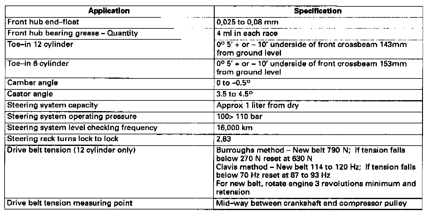 Specifications, Steering