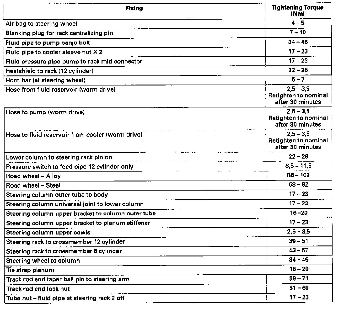 Tightening Specifications