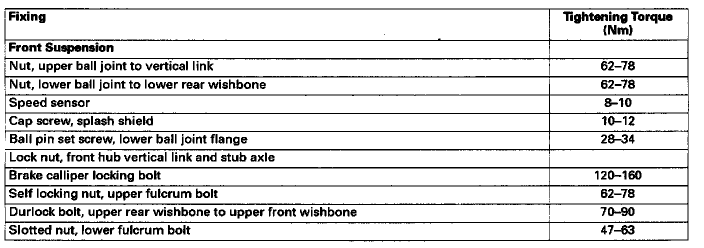 Torque Tightening Specifications