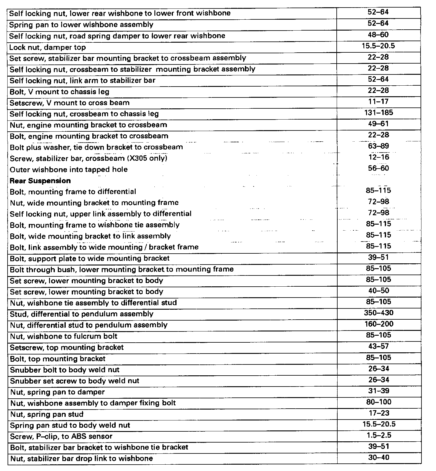 Specifications, Suspension