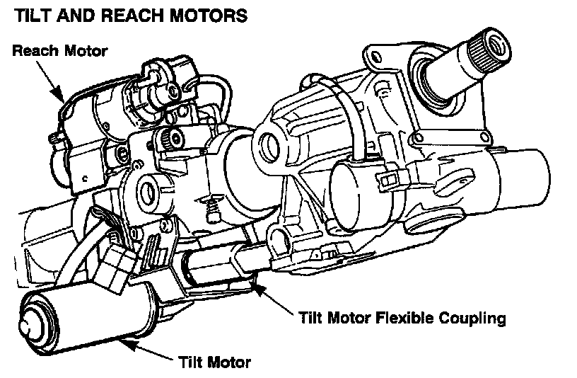 Two independent motor/gearbox assemblies provide infinite adjustments for tilt and reach within approximate ranges of 13 and 35mm respectively. Adjustments may be automatically made in conjunction with the seat memory facility or manually using the steering adjustment switch. When the steering switch is moved to OFF, the automatic exit/entry feature is disabled.