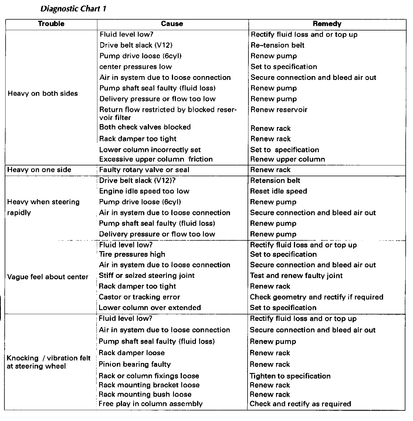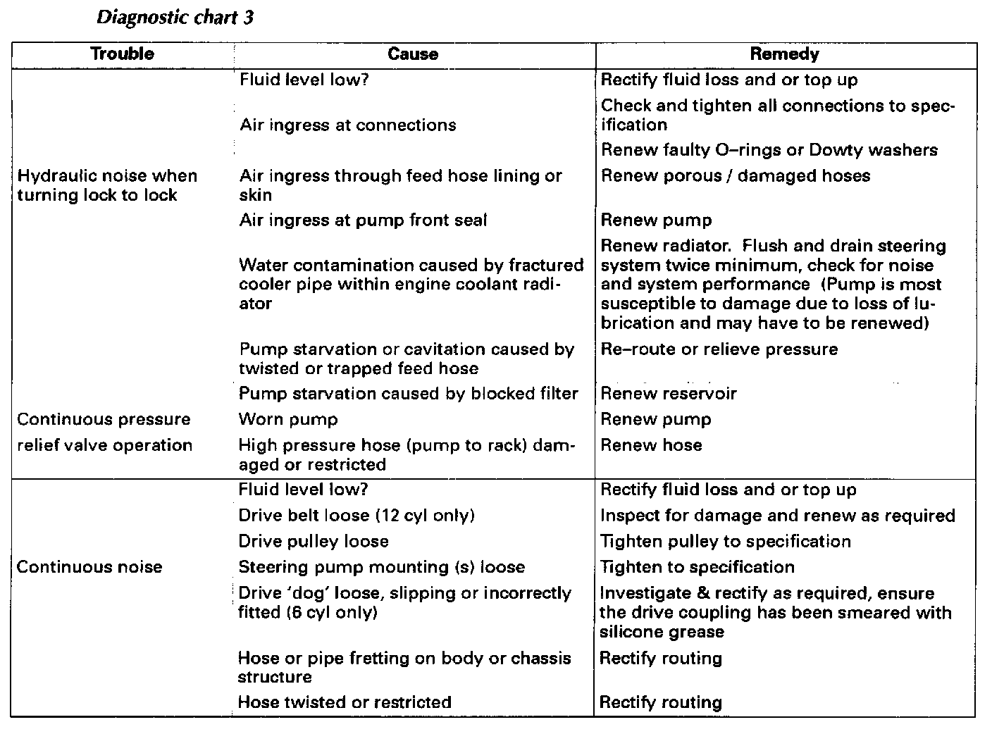 Before any problem solving is undertaken it is essential that the fluid level and where applicable, belt tension, is checked and if required corrected.