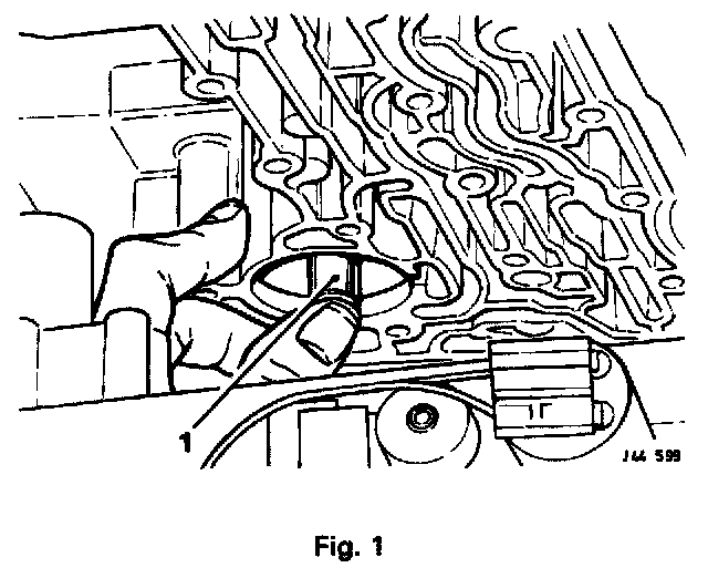 ^ Place front servo piston, pin and spring assembly aside, see Fig. 1.