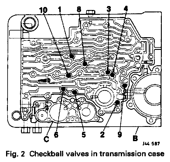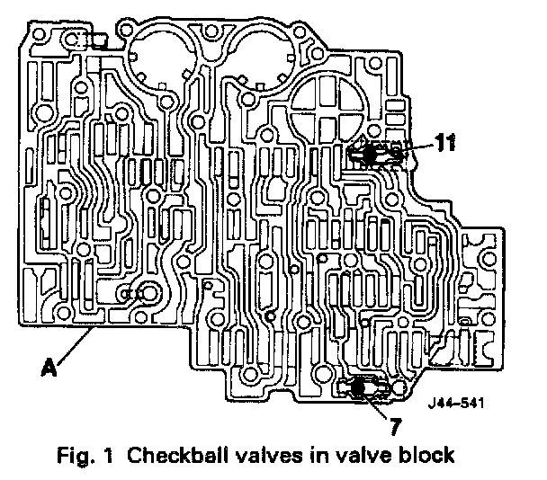 There are 11 checkball valves, located in the valve block and transmission case, see Figs. 1 and 2. The function of each is described below.