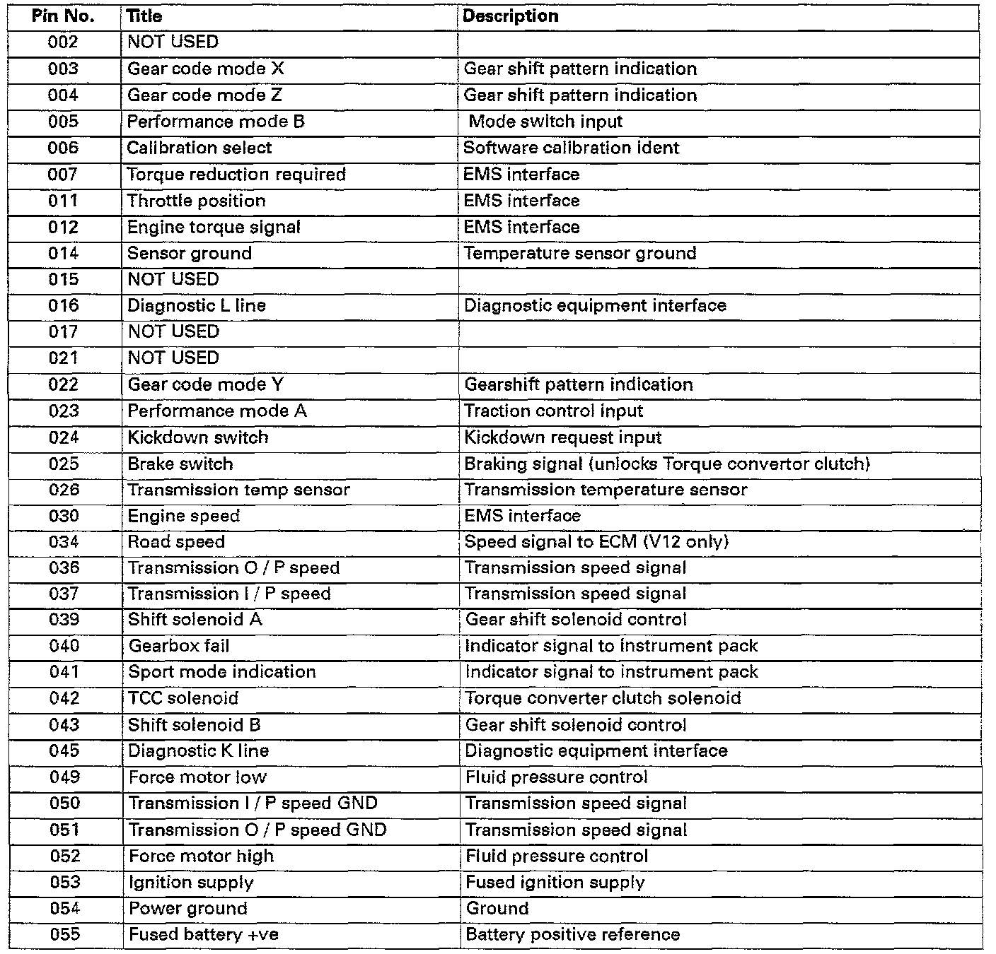 TRANSMISSION CONTROL MODULE - CONNECTION INFORMATION