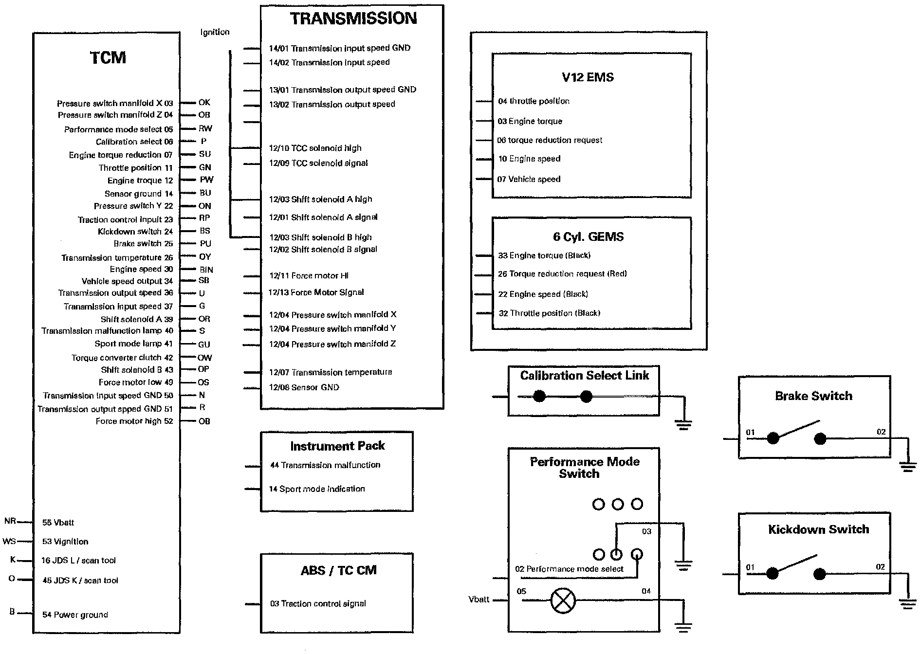 The transmission control module (TCM) is an electronic control unit for the control of the Powertrain 4L-80-E automatic transmission. The TCM senses various engine and transmission parameters to provide optimum transmission performance and refinement. The electronic control signals are applied to solenoid valves which operate the hydraulic circuits for gear selection and torque convertor clutch lock-up An electrically operated hydraulic pressure regulator is used to modulate gearshift pressures, giving smooth changes.