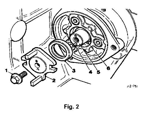 - Remove the flanged bolt (1 Fig. 2) and the drive-plate (2 Fig. 2).