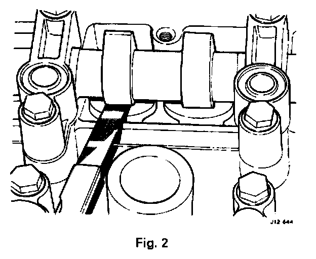 - Measure the valve clearance between the heel of the cam and the cam follower (Fig. 2), turning the camshaft as necessary to measure all the clearances, see Valve Clearance Adjustment.