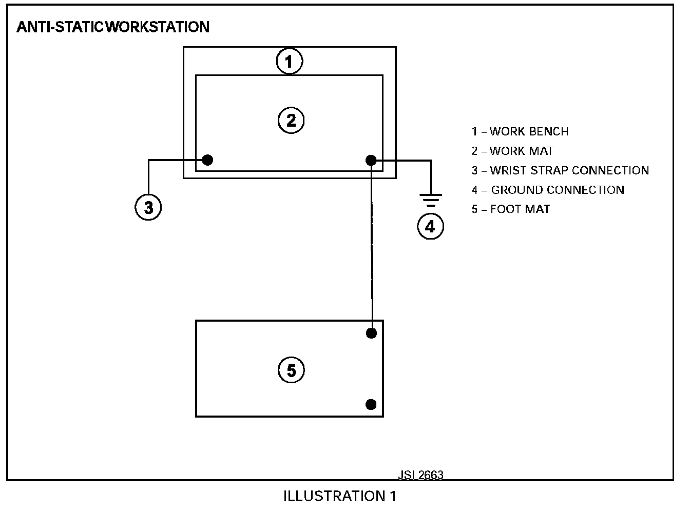 Perform the following operations at an antistatic workstation (previously supplied) while wearing a grounding wrist-strap (Illustration 1). Additional work mats can be sourced locally, such as Radio Shack cat. no. 910-3780.