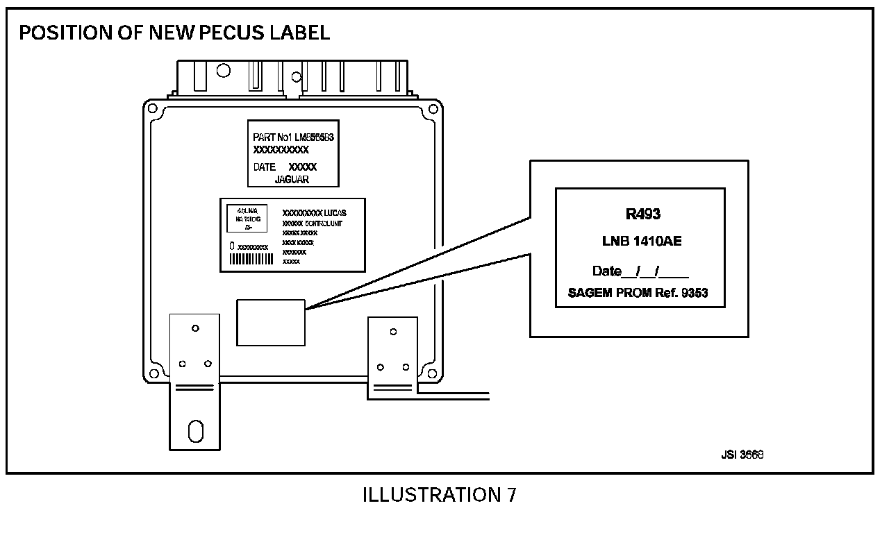 16. Apply the PECUS label from the modification kit to the cover of the ECM. The new label must not obscure any existing label on the unit (Illustration 7).