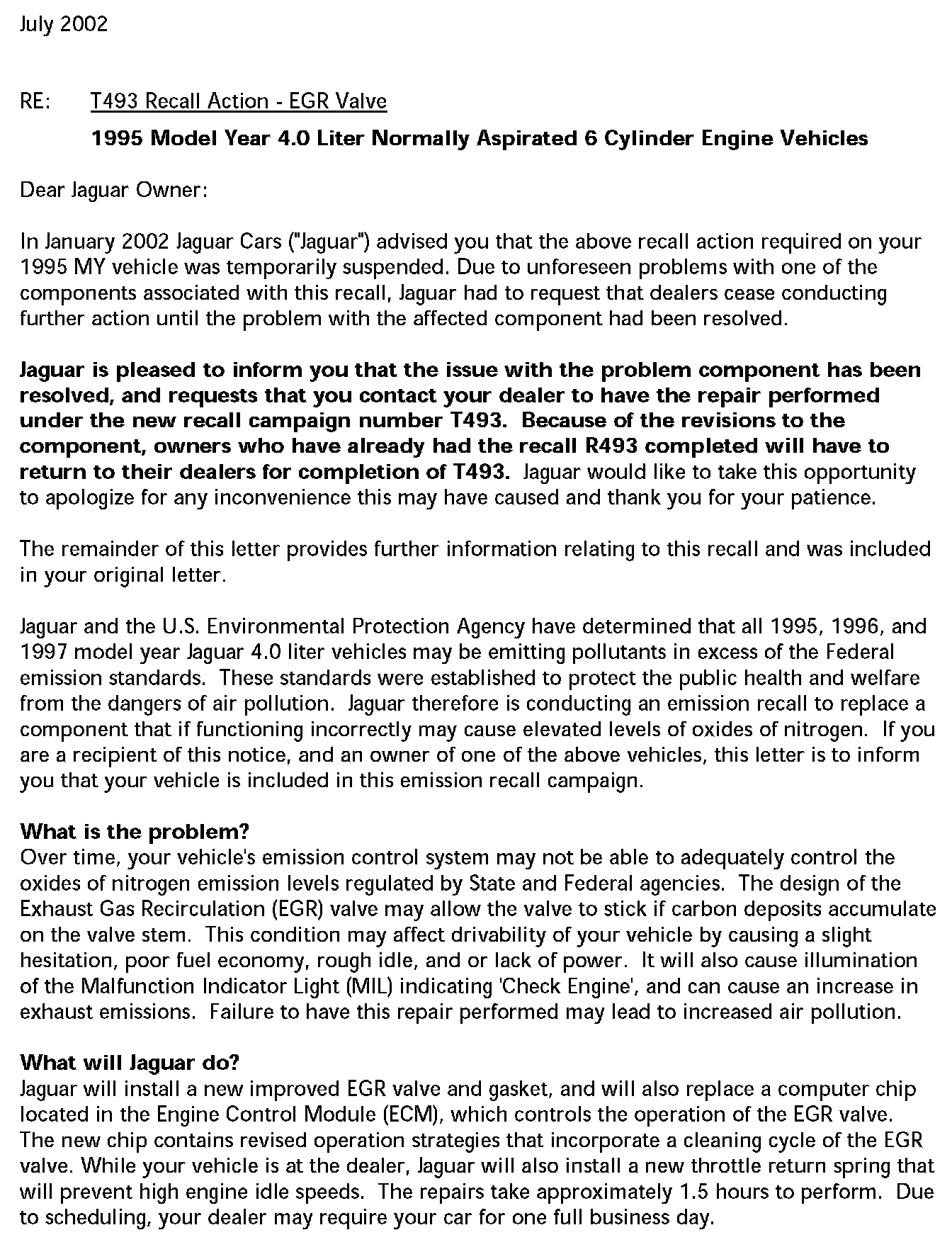 Recall - T493, R493 Replacement PROMs and EGR valve