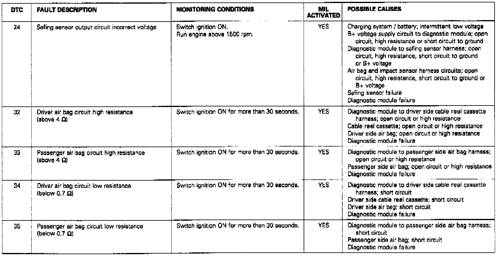 DTC Codes 24, 32, 33, 34, 35: