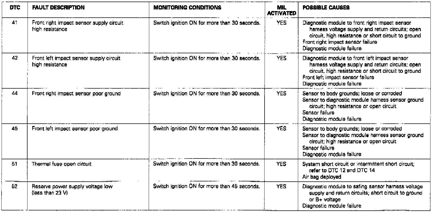 DTC Codes 41, 42, 44, 45, 51, 52: