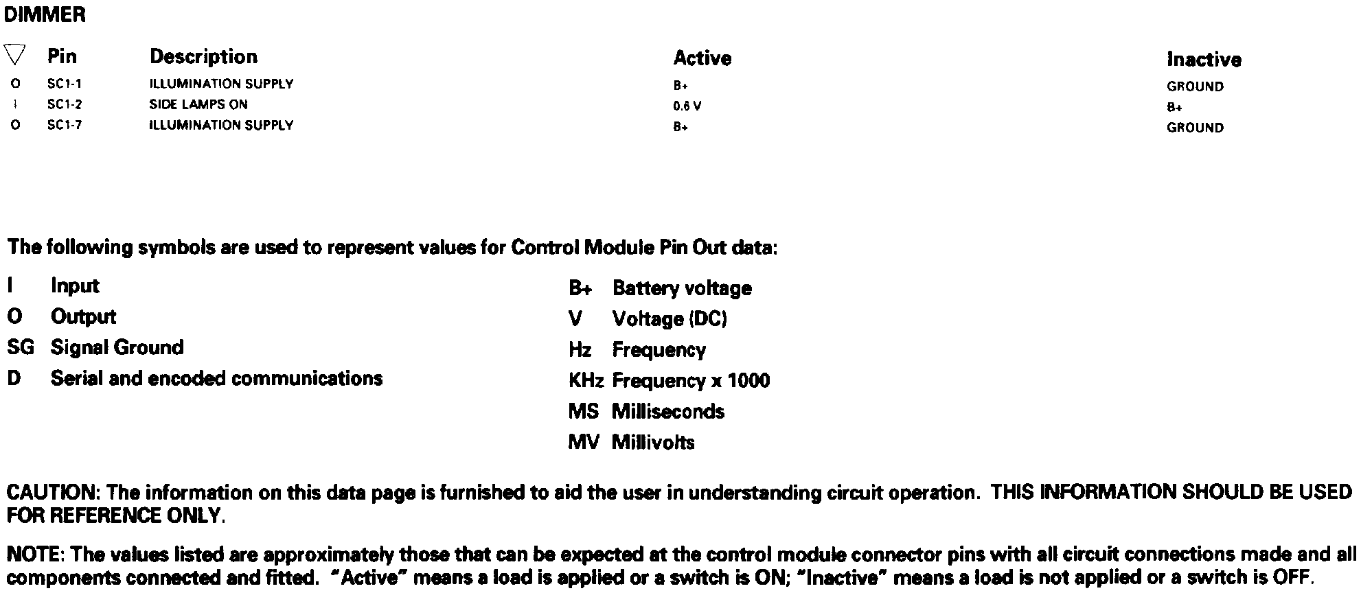 Dimmer Controlled Lighting: Control Module Pin Out Information: