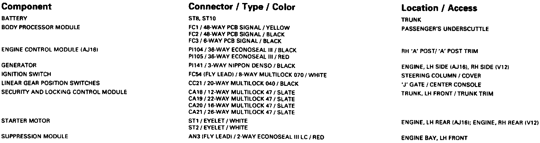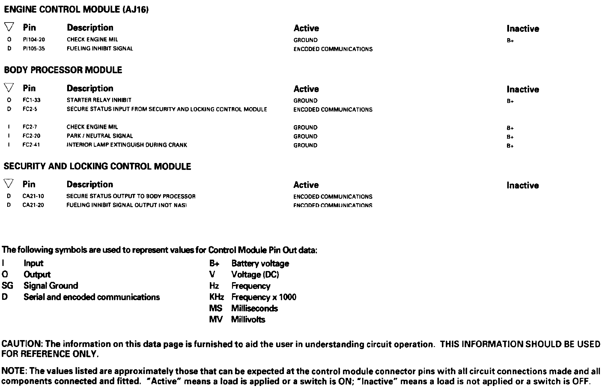 Battery; Starter; Generator-Automatic: Control Module Pin Out Information: