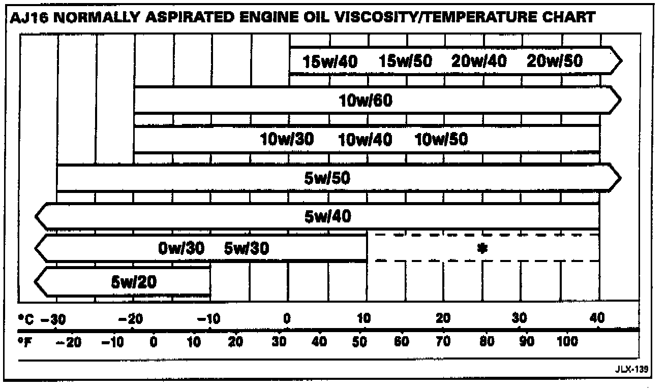 In addition, the ambient temperature range for the use of 5W/30 oils has been extended from 50°F (10°C) to 104°F (40°C) subject to certain limitations on oil specifications on AJ16 normally aspirated engines ONLY.
