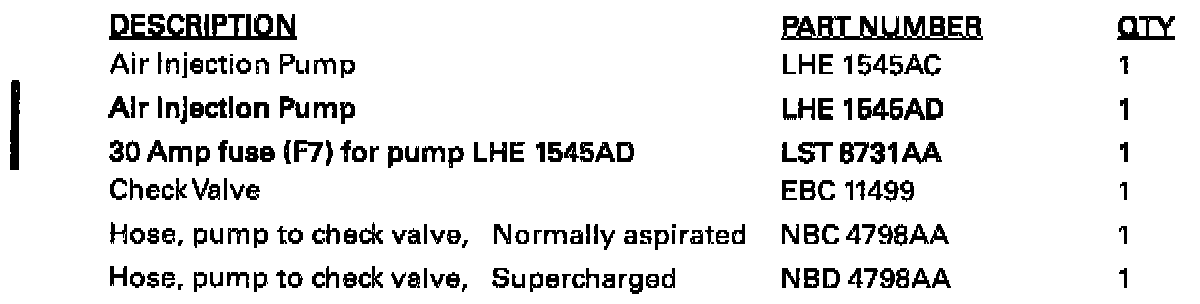 Refer to Technical bulletin 05.1-30 for additional information. The later style air pump requires a fuse upgrade from 25 to 30 Amp.