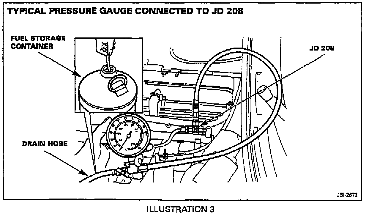 20. Disconnect tool JD 208 from the fuel supply line and reconnect the supply line to the fuel rail.