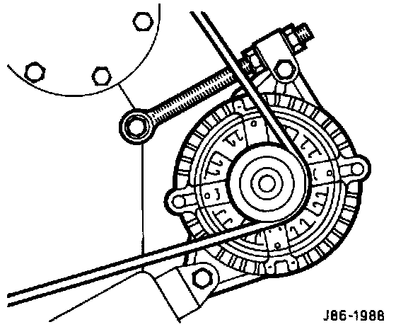 - Loosen the generator pivot bolt locknut, the generator to trunnion block securing bolt and the adjusting bolt to the timing cover nut.