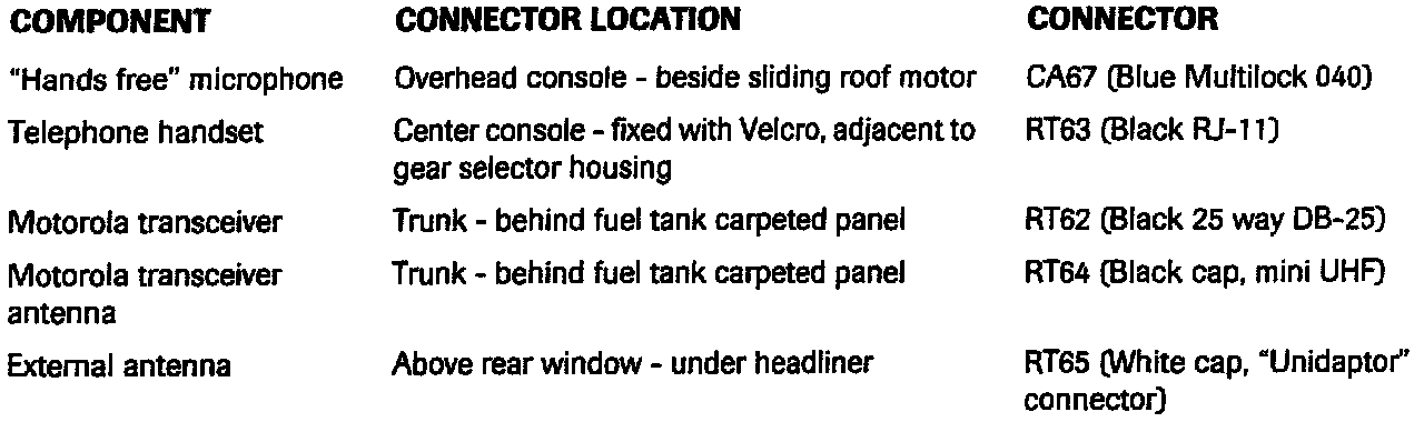 The audio system of 1995 MY Sedan Range vehicles has been revised for the operation of "hands free" cellular phones. The revision includes changes to the vehicle harness and connections.