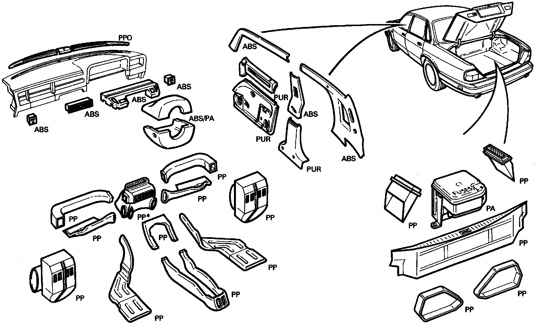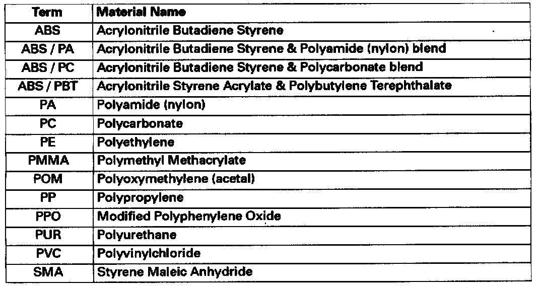 Use Images below in conjunction with Image above for rapid component identification. Not all plastic components are nominated, only those suitable for economic reclamation.